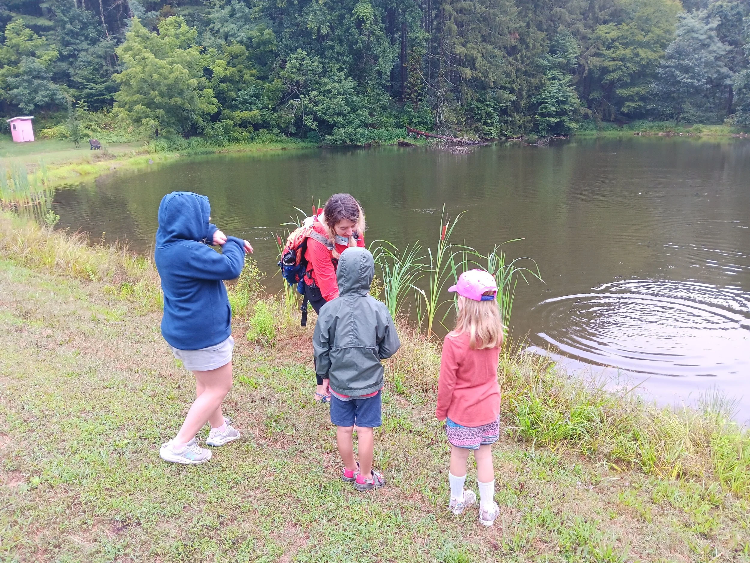 We may go for a hike and observe vernal pools full of amphibian eggs, complete a water flow experiment while discussing water erosion, read a nature story, spend time in the creek searching for macroinvertebrates, learn how to build an emergency shelter, go foraging for wild edibles while discussing foraging safety and ethics, or play a nature game.